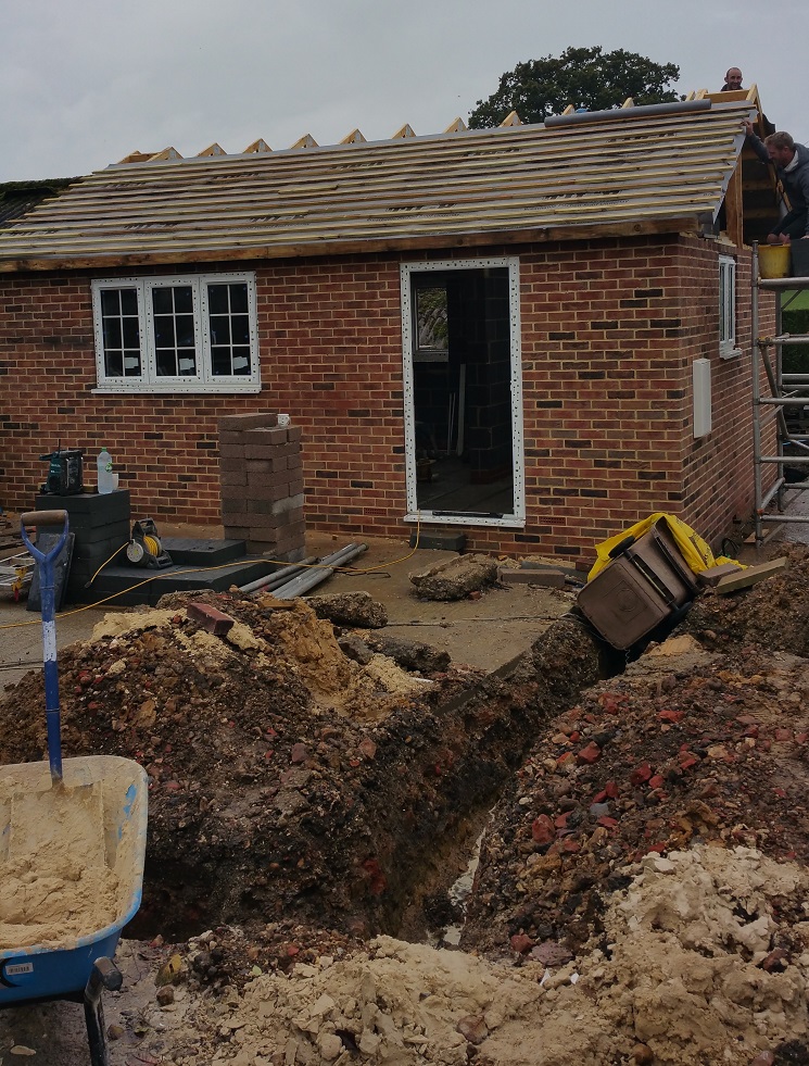 A surprising amount of work involved in construction is buried under the ground. Sewers, surface water drainage, foundations, footings, soakaways and services are all an essential part of a build.